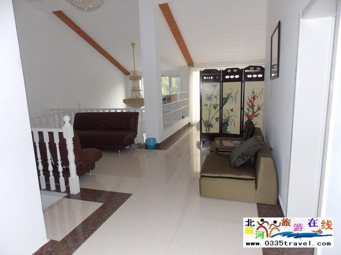 二樓:客廳內(nèi)有兩個(gè)折疊式皮沙發(fā)床,還有2個(gè)木質(zhì)休閑沙發(fā)椅,2樓有共2個(gè)臥室,2個(gè)衛(wèi)生間,其中主臥室是1.8米X 2米大床,獨(dú)立大陽(yáng)臺(tái)、獨(dú)立衛(wèi)生間;副臥是兩張1.1米單人床標(biāo)間??蛷d內(nèi)還有有1個(gè)閣樓式大床房,用屏風(fēng)與2樓客廳其他區(qū)域隔開。如果客人多,2樓的折疊沙發(fā)可以當(dāng)兩張床。